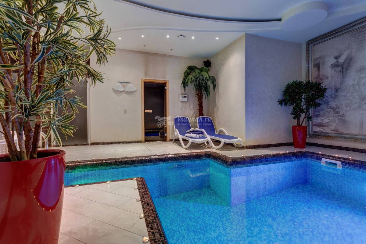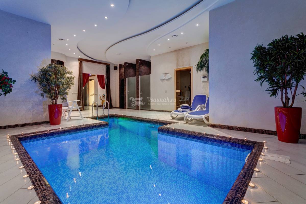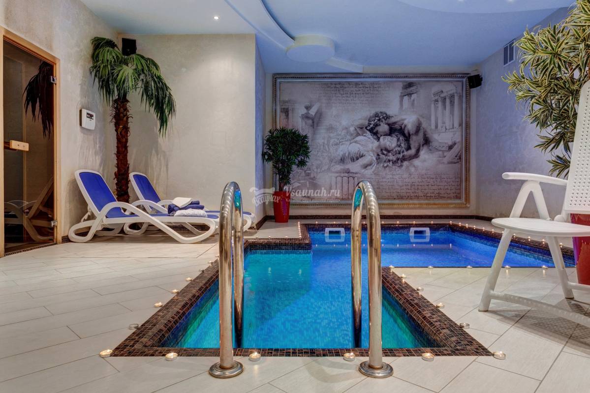 Баня довольно просторная, как и парная а целом. Бассейн чистый, хлоркой не воняет. 10 чел может без труда разместиться.